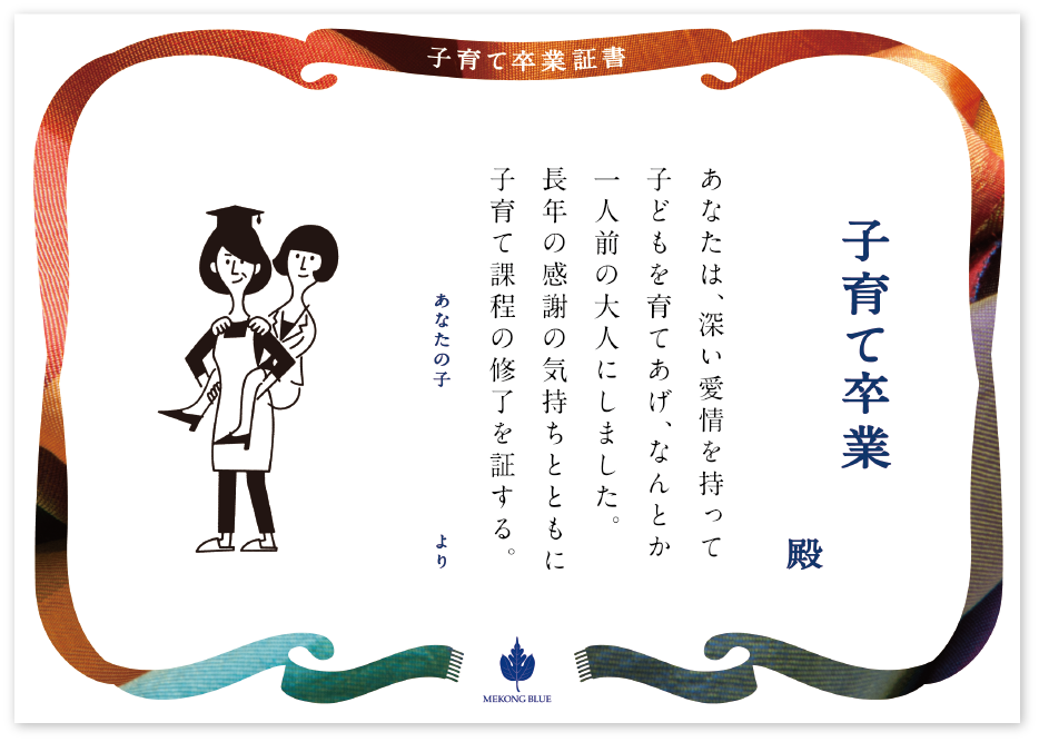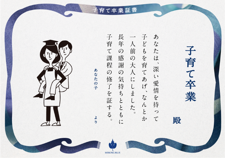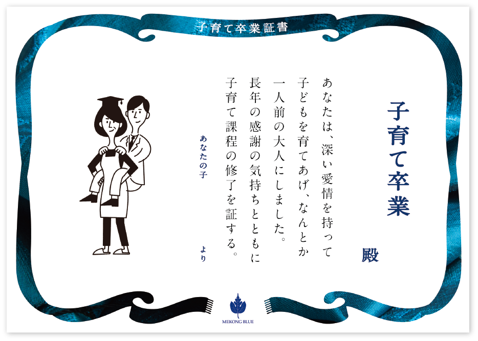 そこにあなたの自立を宣言する「子育て卒業証書」を添えて。