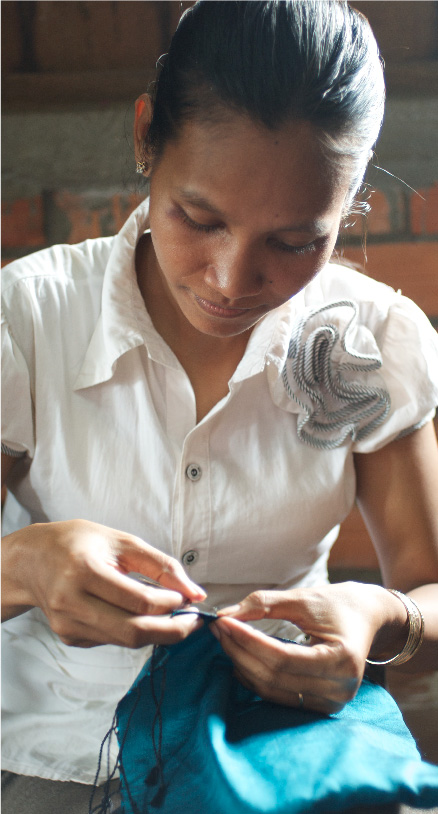 メコンブルーのシルクストールは、カンボジア女性の